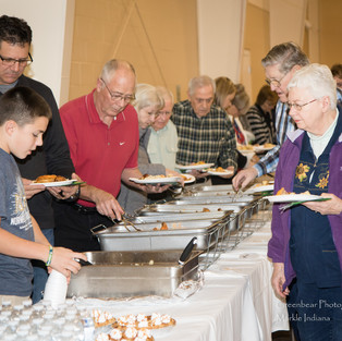 On November 12, the first of an annual fundraiser was held at the 4-H Expo Hall in Bluffton, Indiana. The program raised over $2500 for Honor Flight Northeast Indiana. Food donations from community businesses fed the 100+ people who attended the program. They enjoyed Chicken Fried Rice from Umi (Fort Wayne), Cheese, Sausage, Pepperoni and Supreme Pizzas from Pizza Hut, Chicken Wings from Wings, Etc., The Pickle made their signature Bacon Cheeseburger and Chicken Club potatoes, and Lighted Gardens provided an amazing dessert – Apple Cream/Caramel pies.